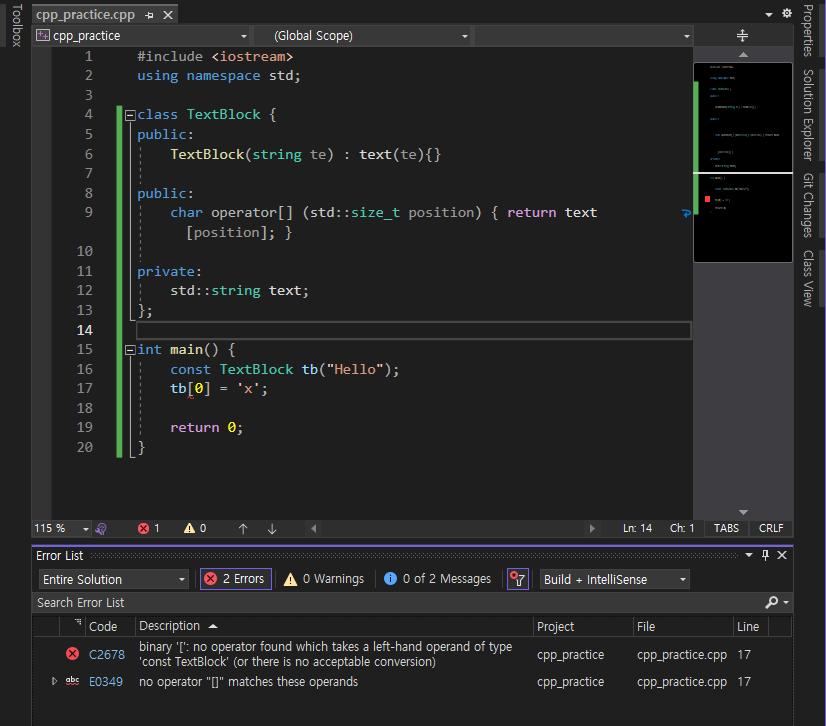 위와 같이 컴파일 에러가 나지 않도록 코드를 고치면 아래와 같습니다.