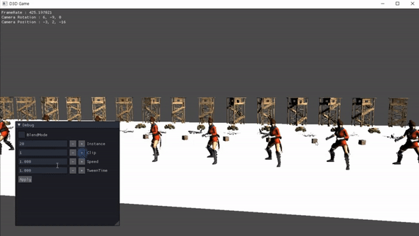 DirectX 11에서 애니메이션을 인스턴스화하는 것은 장면에서 많은 수의 애니메이션 객체를 효율적으로 렌더링하는 데 사용되는 기술이다. 이 기술을 사용하면 단일 개체를 애니메이션화한 다음 서로 다른 변환 또는 애니메이션 상태로 여러 번 그릴 수 있다.