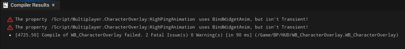 그러나, 해당 이름의 위젯이 없을 경우 위젯 블루프린트의 컴파일이 이루어지지 않는다.