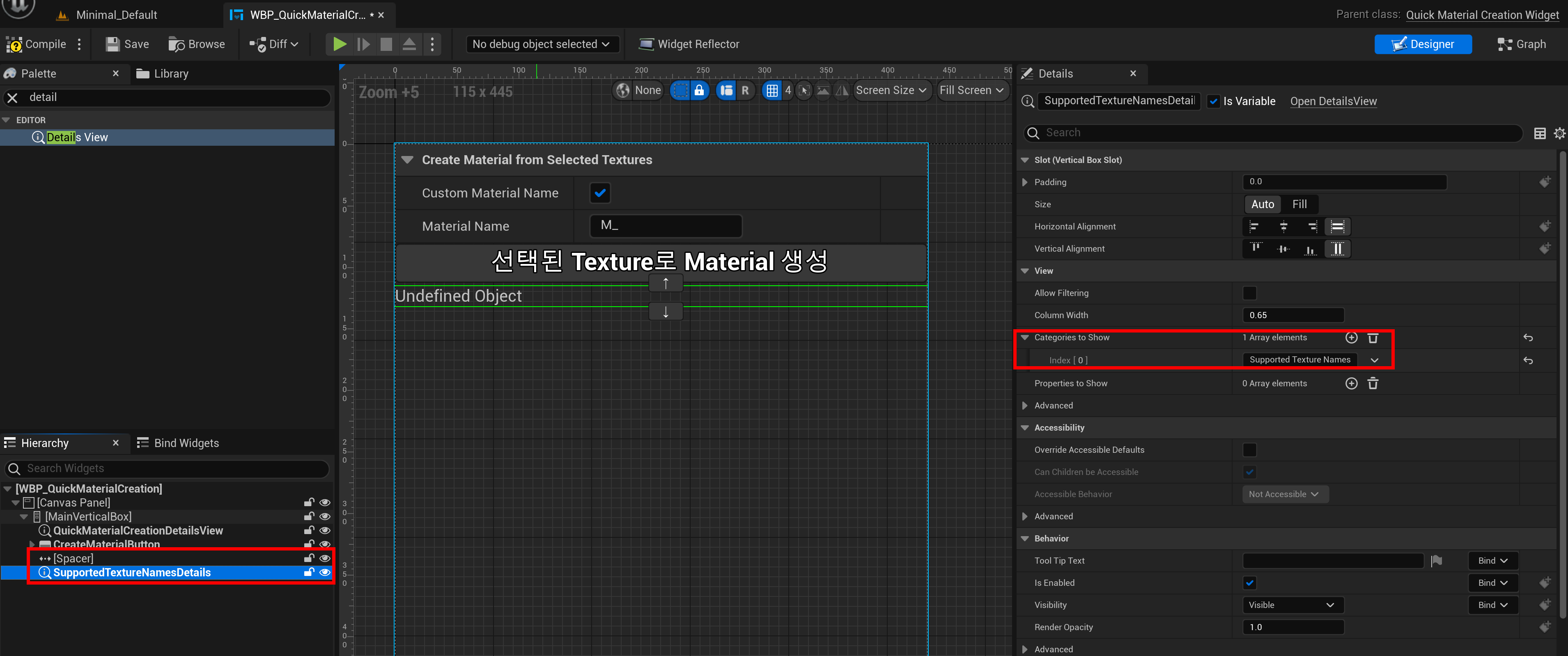 - Custom DetailsView 생성 (여기의 경우 QuickMaterialCreationDetailsView)