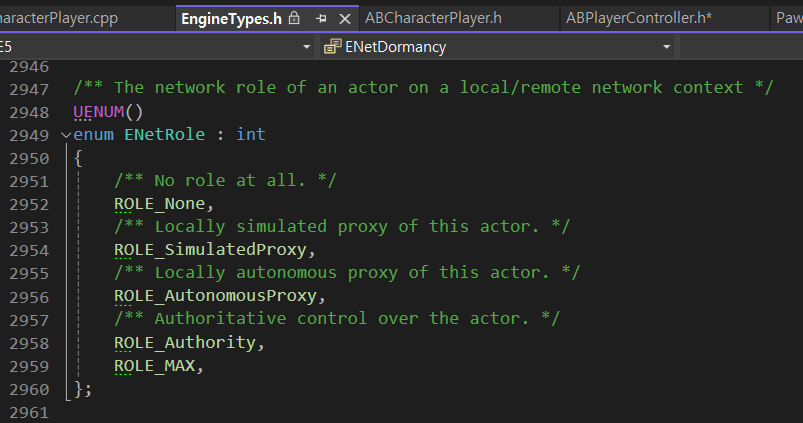 EngineTypes.h에 선언된 ENetRole - None, SimulatedProxy, AutonomousProxy, Authority