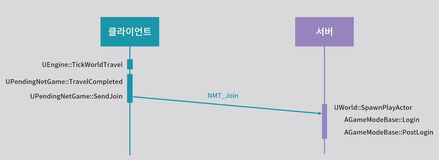 - NMT_Join 패킷을 받은 서버는 UWorld::SpawnPlayActor 함수를 호출