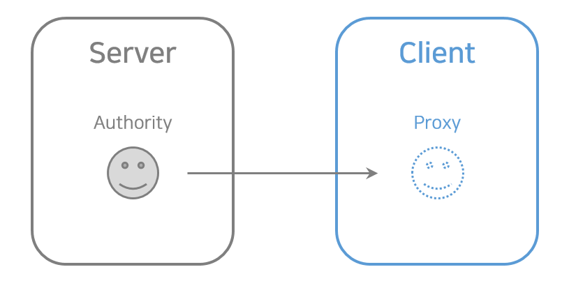 Client - Server 모델에서는 항상 Server에 있는 Actor만이 신뢰되고, 이를 Autority를 가진다고 표현한다.