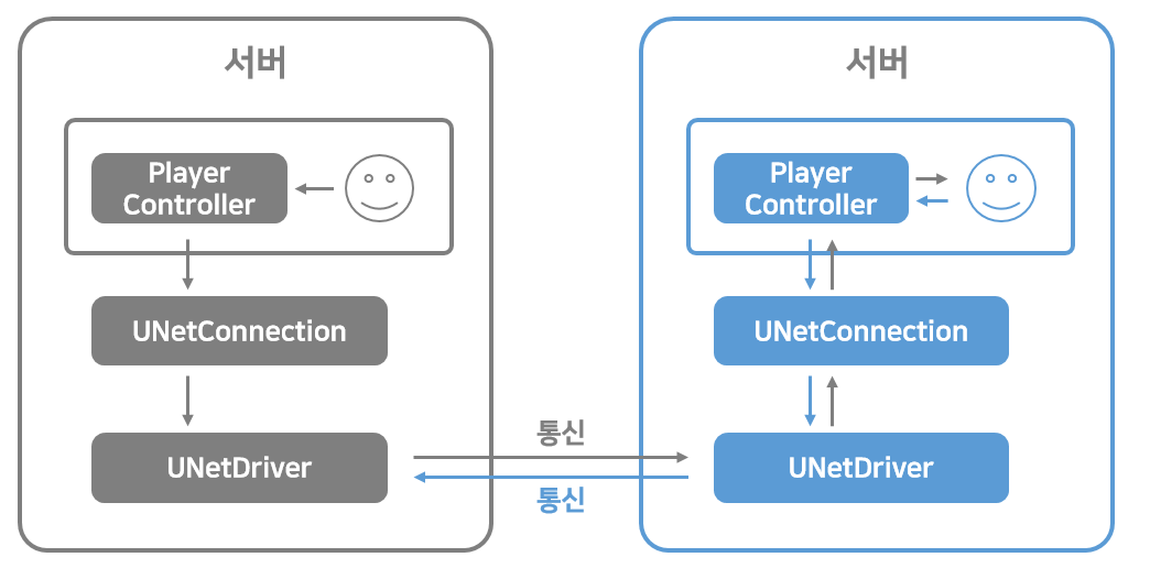 - (상위 개념에서) 데이터 통신을 관리하기 위한 대표 액터로 플레이어 컨트롤러가 주로 사용됨.
