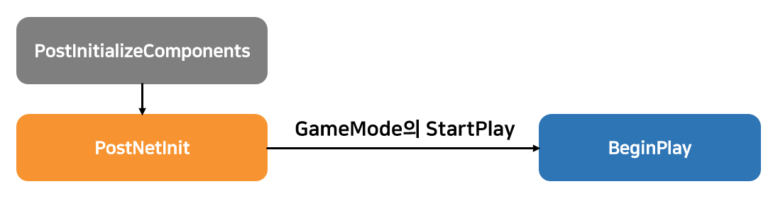 - PostInitializeComponents()함수는 액터를 설정하는 기능이라 네트웍과는 관련이 없다. 그래서 네트워크 기능 사용시에는 PostNetInit() 함수를 추가로 사용해야 한다.