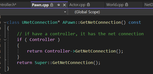 Controller가 있으면 Controller의 GetNetConnection() 함수를 호출하여 NetConnection을 반환한다.