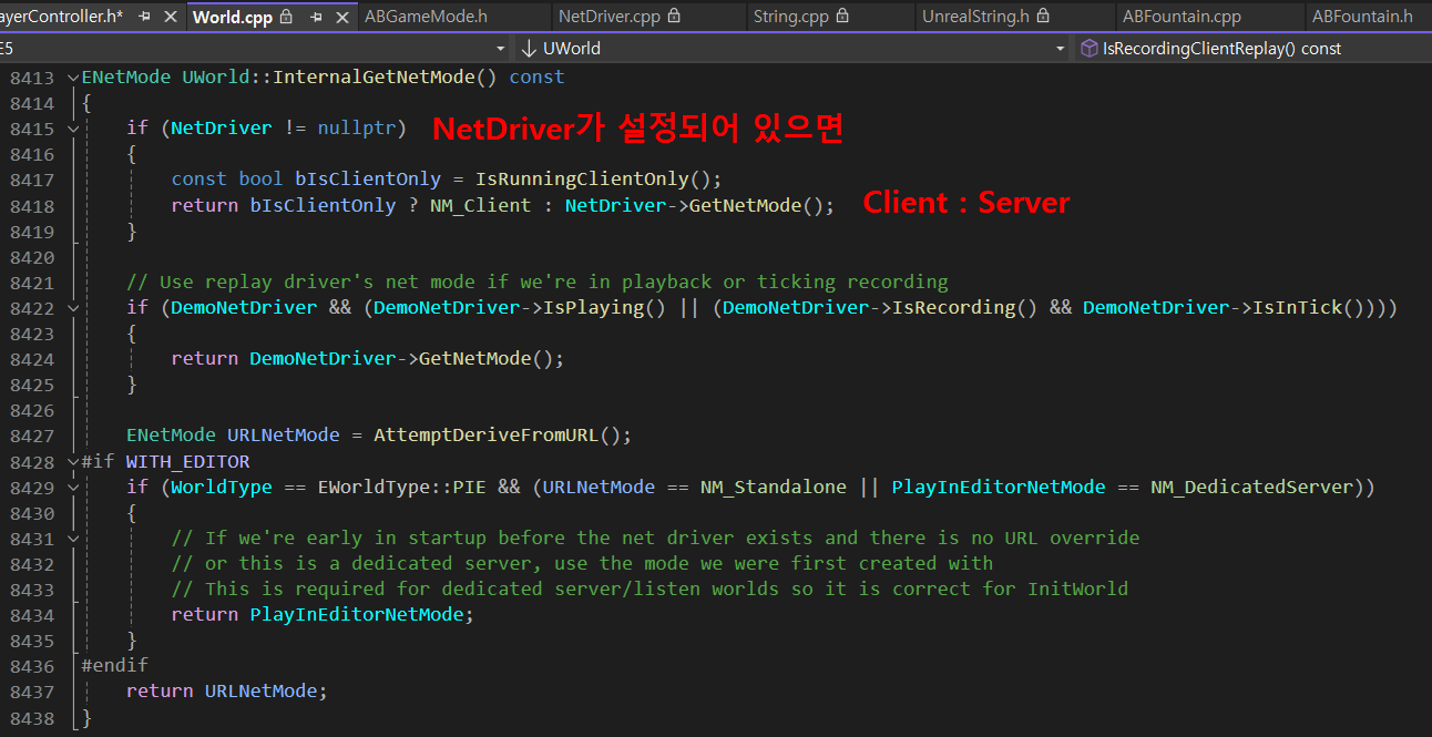 Actor.cpp의 AActor::GetNetConnection() 함수