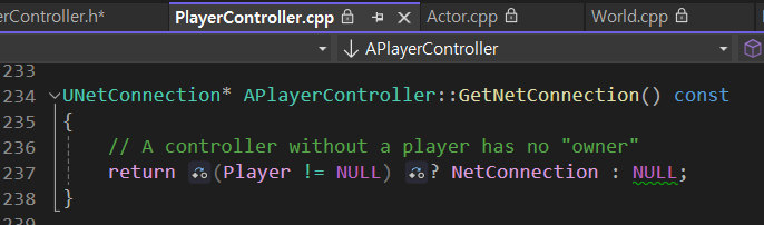 PlayerController.cpp의 APlayerController::GetNetConnection() 함수