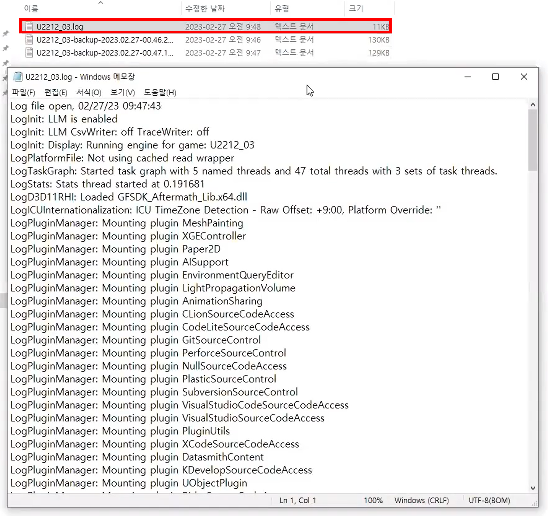 - ...\Saved\Logs 폴더 안의 .log파일을 열어준다.