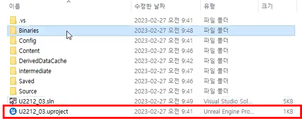 - 언리얼 프로젝트 폴더