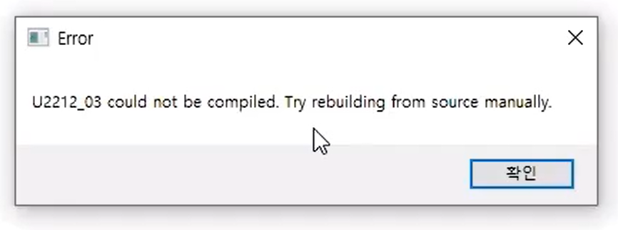 - Error 팝업이 뜬다. 확인을 눌러준다.