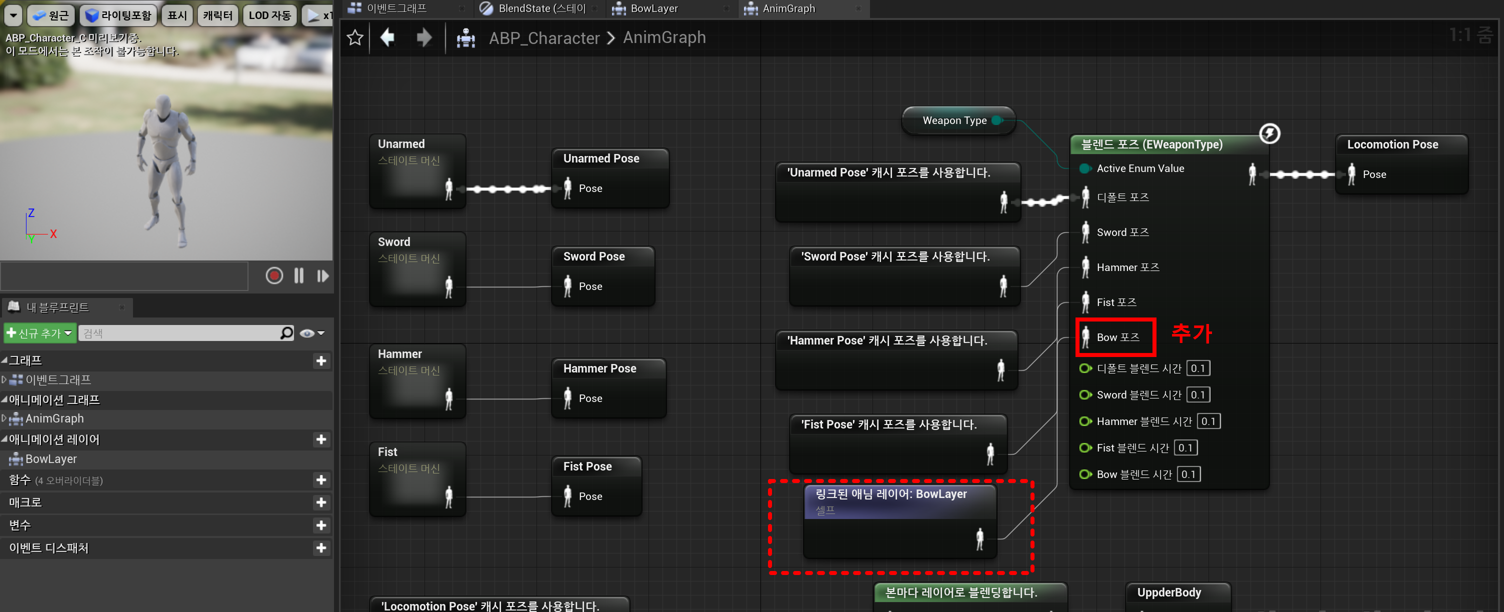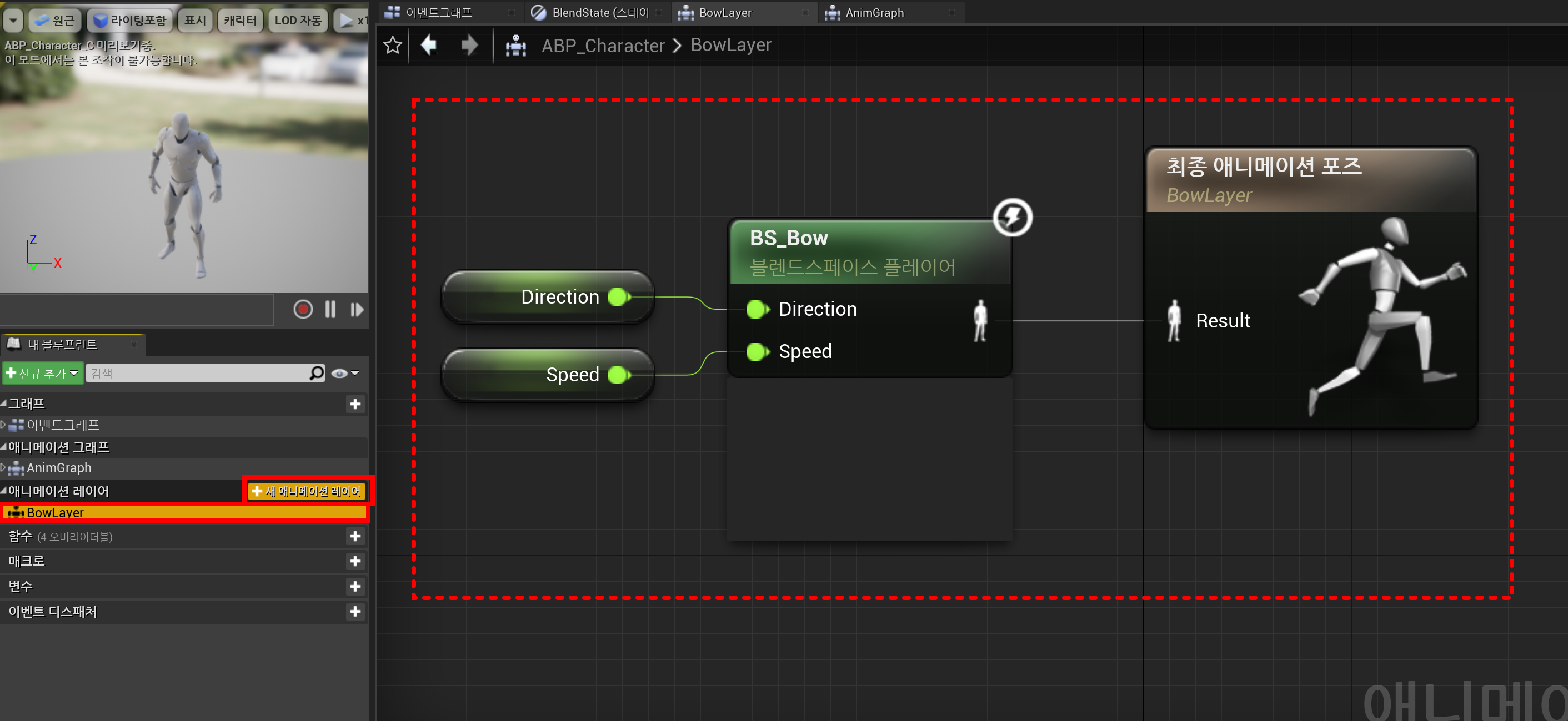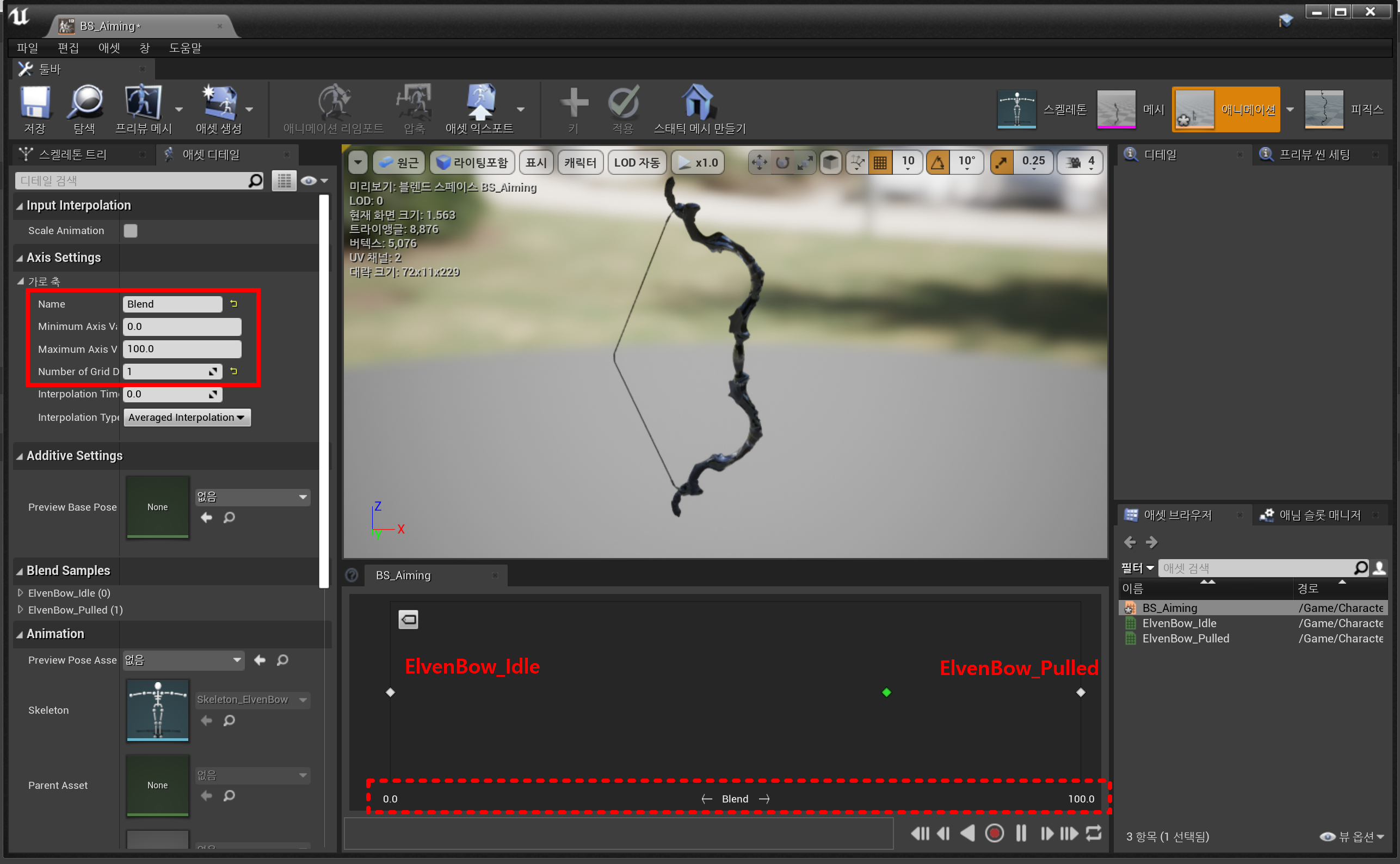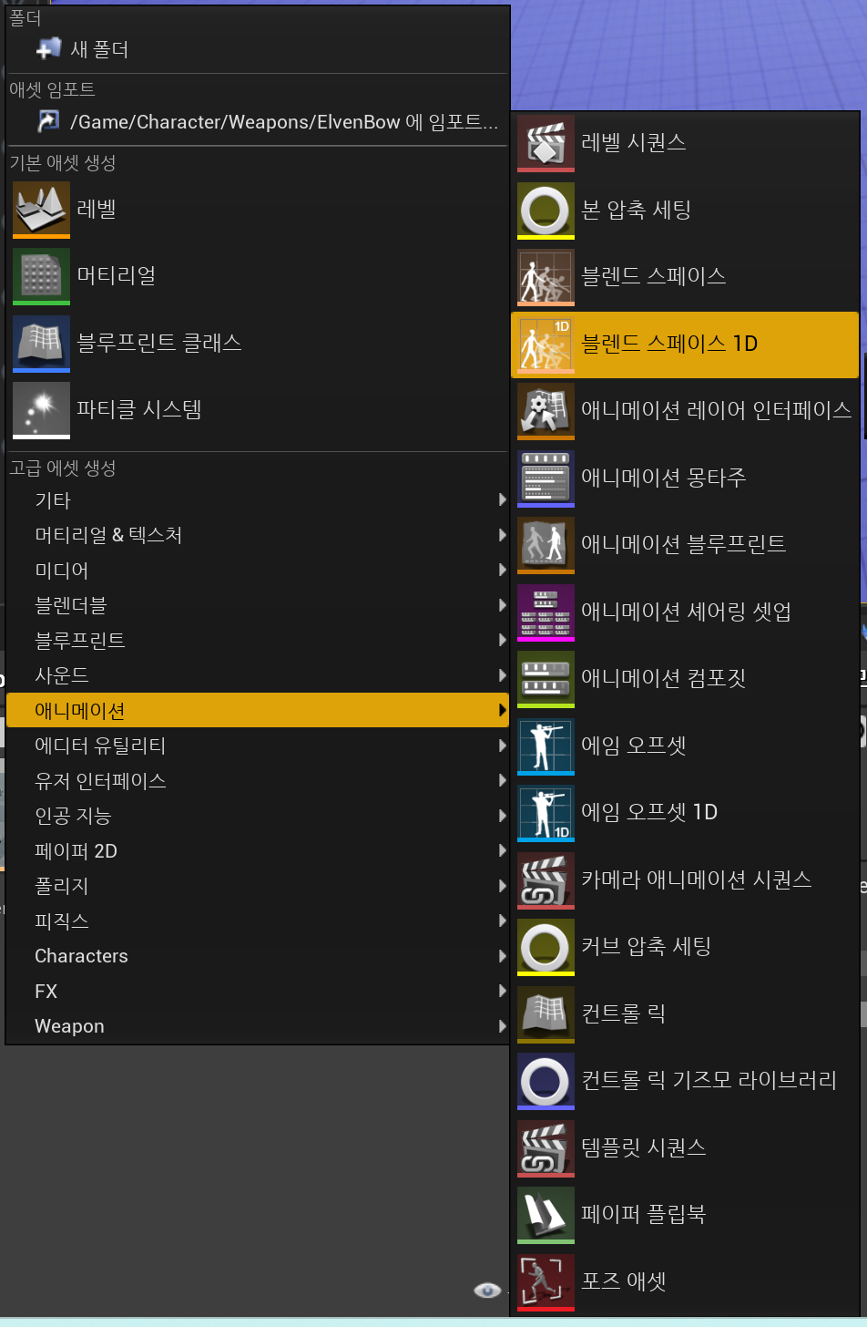 애니메이션 - 블래드 스페이스 1D - Skeleton_ElvenBow 선택 - BS_Aiming 생성