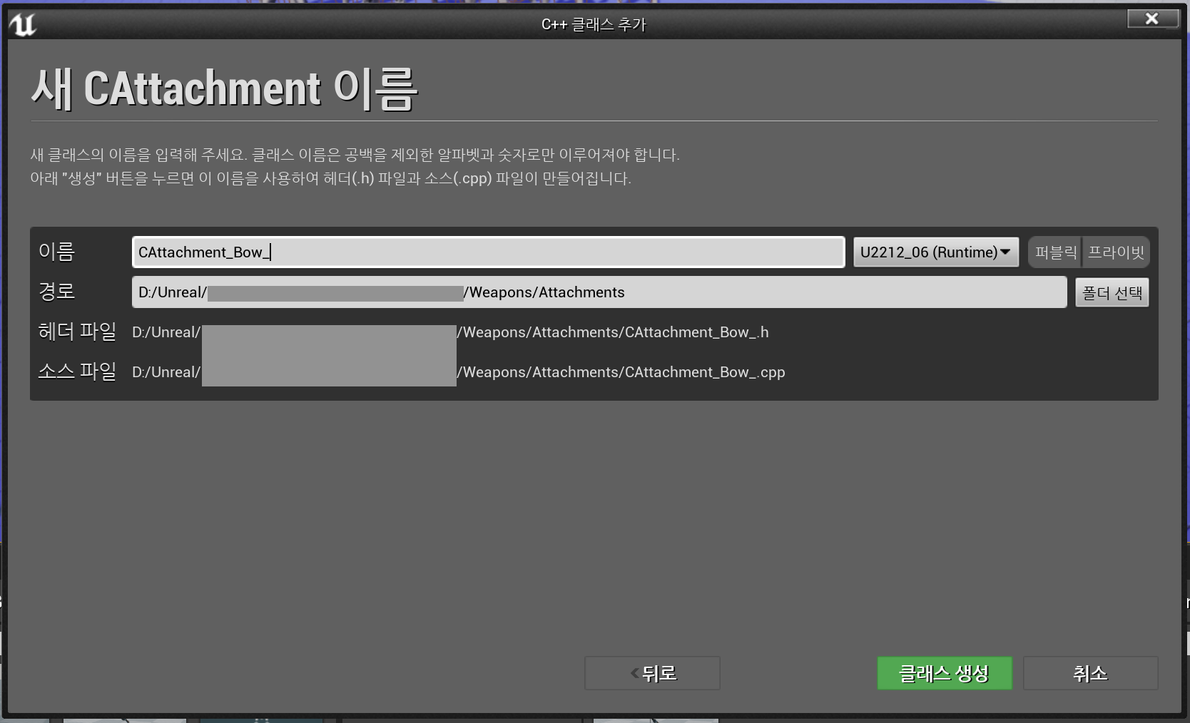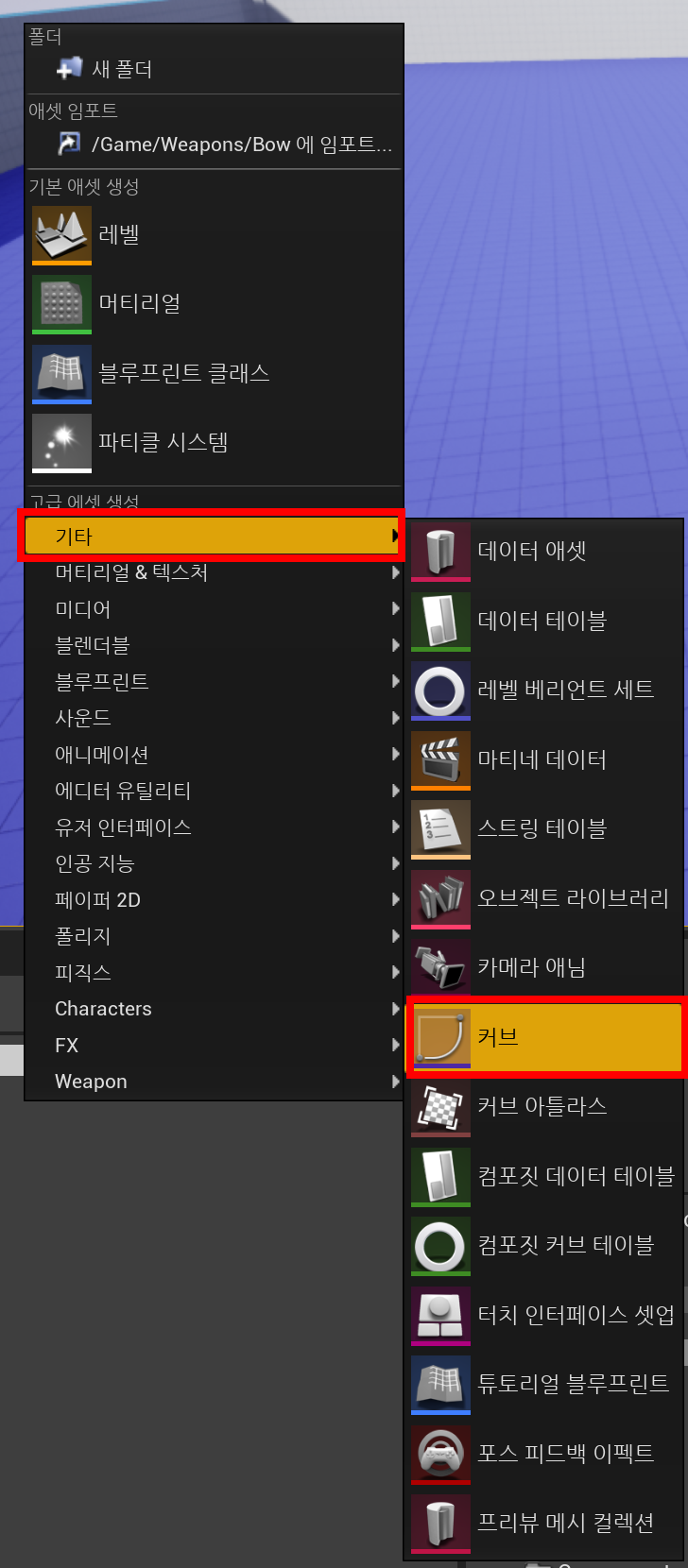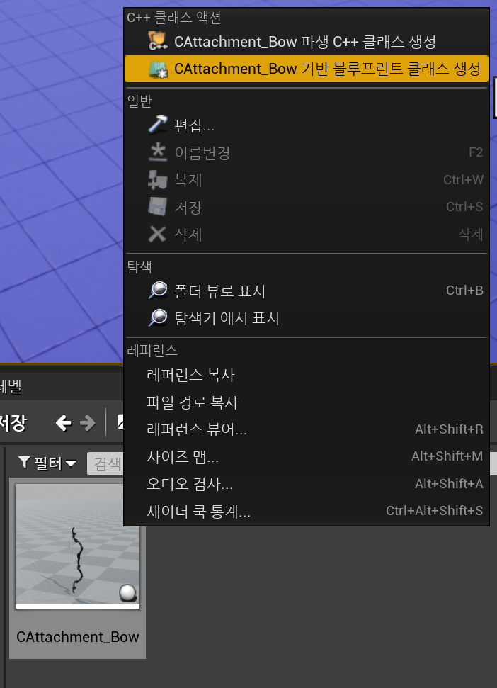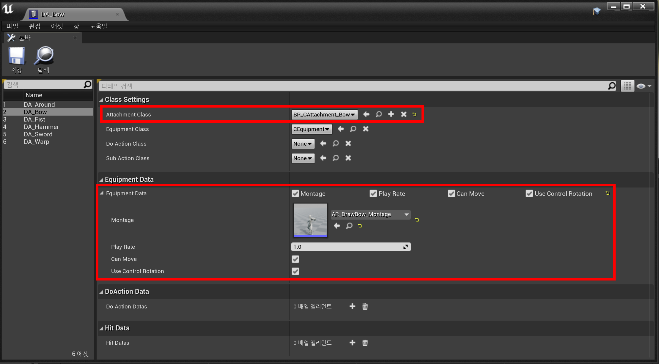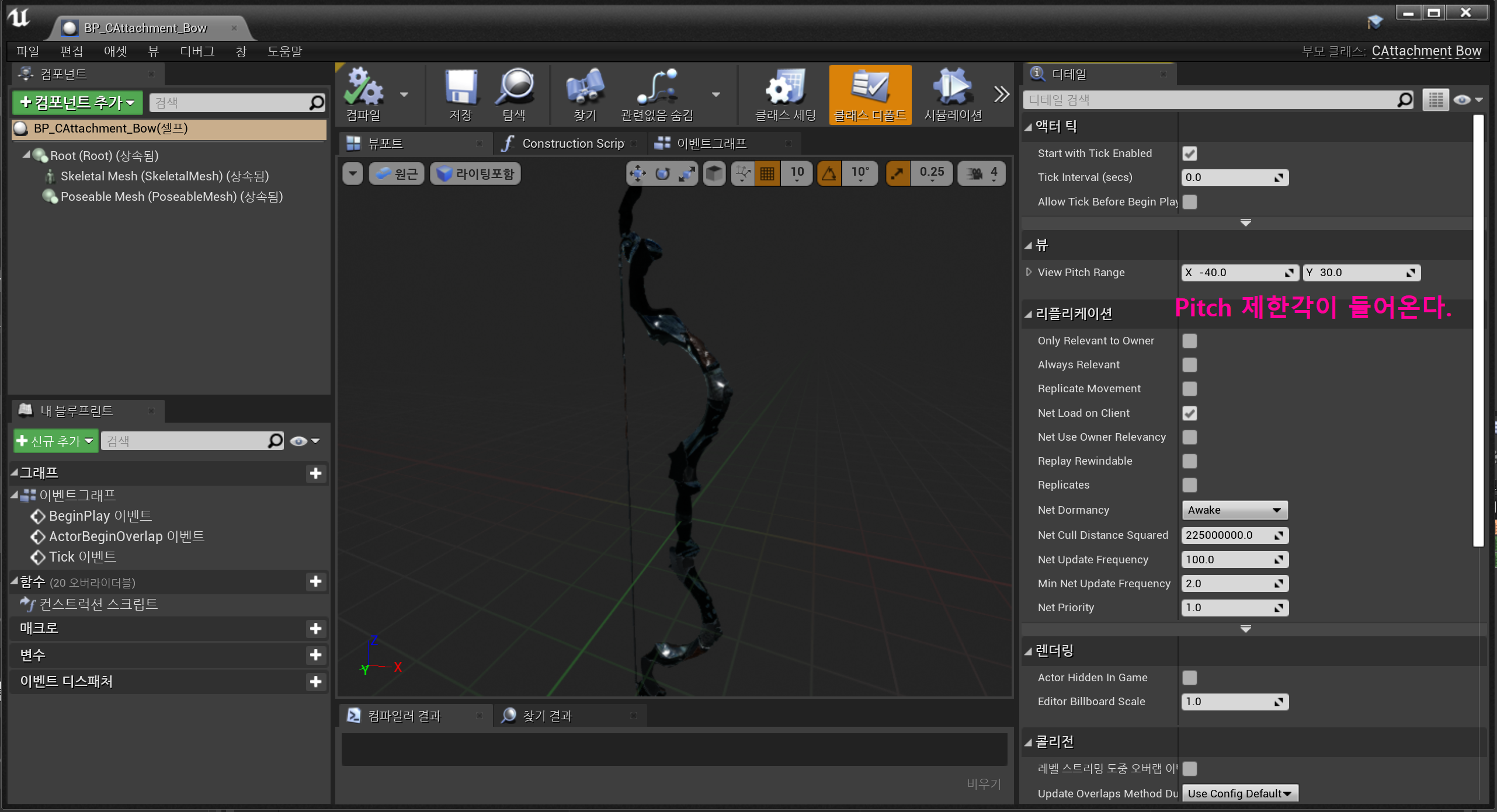 이전에 만든 Attachment을 구조를 활용하여 활 무기를 추가해보자. CAttachment_Bow를 생성하여 활용하여 활은 만든다. BlendSpace와 Curve를 활용하여 활이 구부러지는 것을 구현한다.