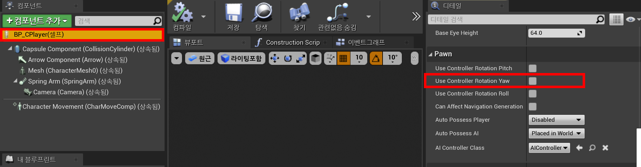 - PlayerInputComponent의 헤더는 #include "Components/InputComponent.h"