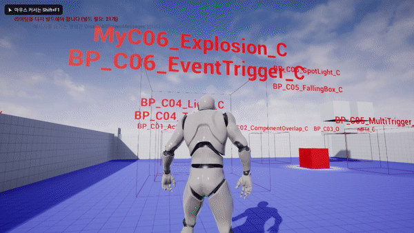C01_ActorOverlap.h .cpp C02_ComponentOverlap.h .cpp C03_OverlapAndHit.h .cpp C04_Trigger.h .cpp C04_Light.h .cpp C05_MultiTrigger.h .cpp 생성 C05_FallingBox.h .cpp 생성 C05_SpotLight.h .cpp 생성 C06_EventTrigger.h .cpp 생성 C06_Explosion.h .cpp 생성 |