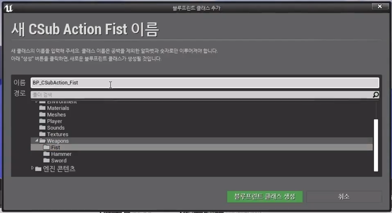주먹 난타 스킬 구현하기 - SubAction 구조 생성하기