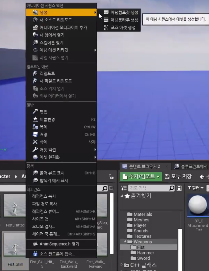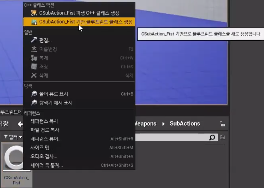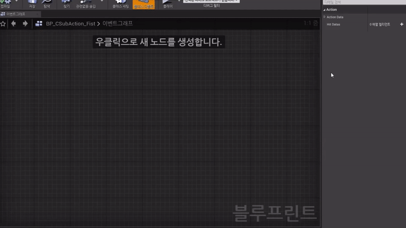 마우스 우클릭으로 각 무기 당 스킬을 구현할 것이다. 스킬들은 SubAction으로 묶는다. 첫번째로 주먹 스킬을 구현해보자.