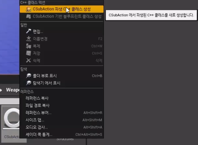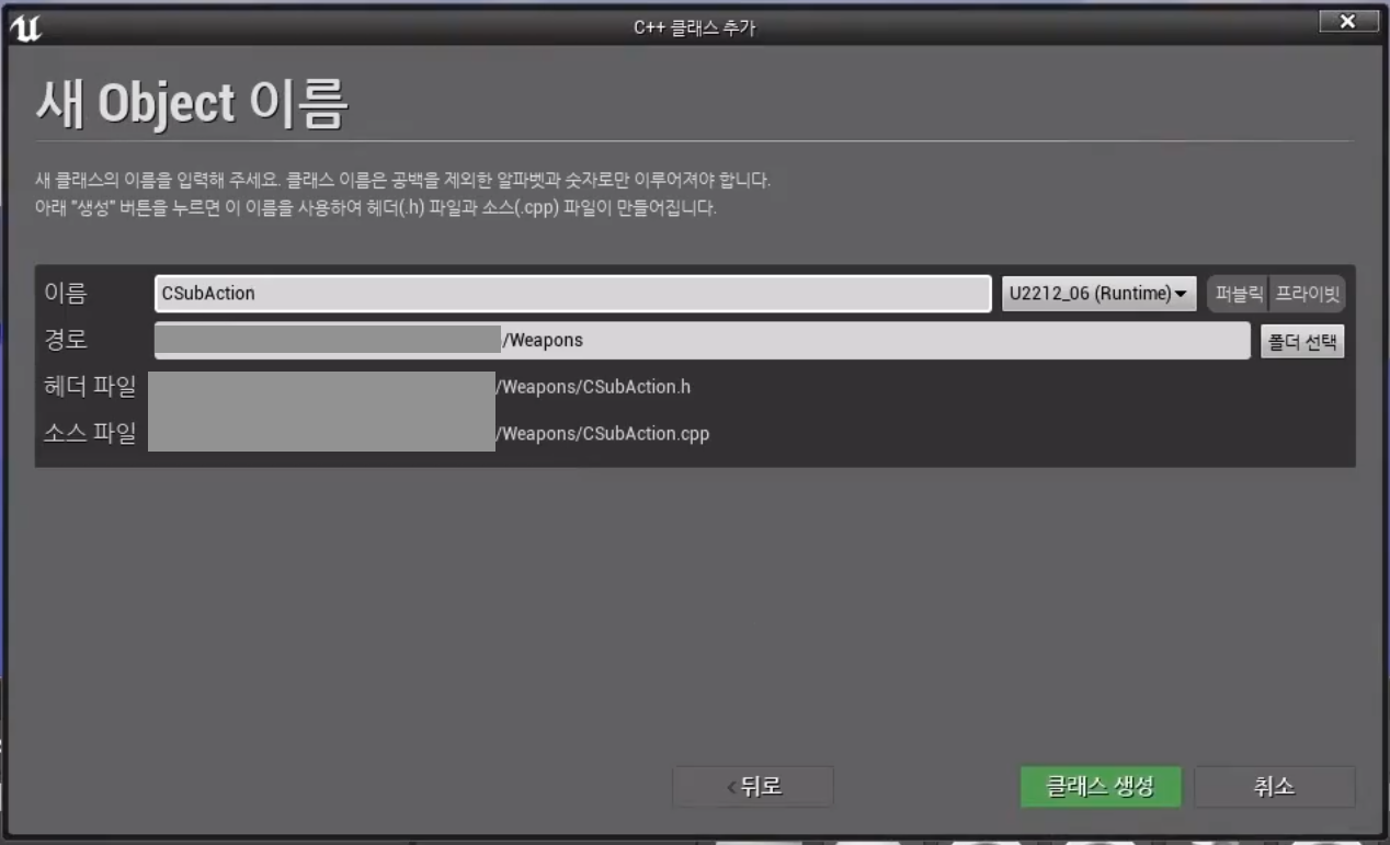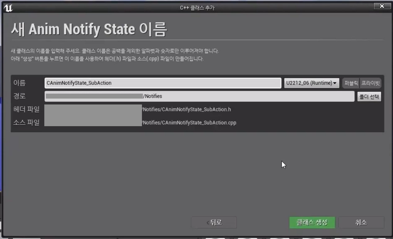 새 C++ 클래스 - AnimNotifyState - CAnimNotifyState_SubAction 생성