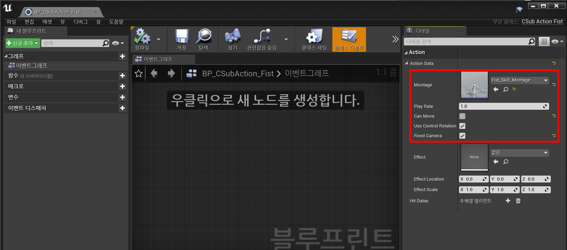 주먹 난타 스킬 구현하기 - SubAction 구조 생성하기
