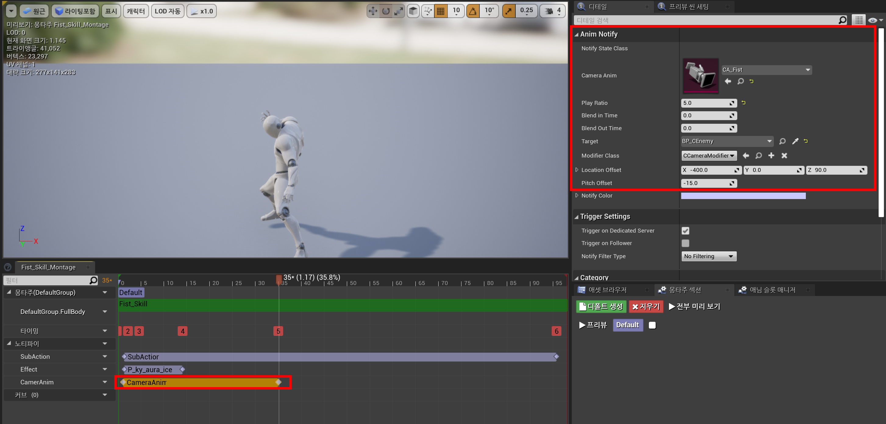 Fist_Skill_Montage에 노티파이 트랙을 추가하고 CAnimNotifyState_CameraAnim을 넣어준다.