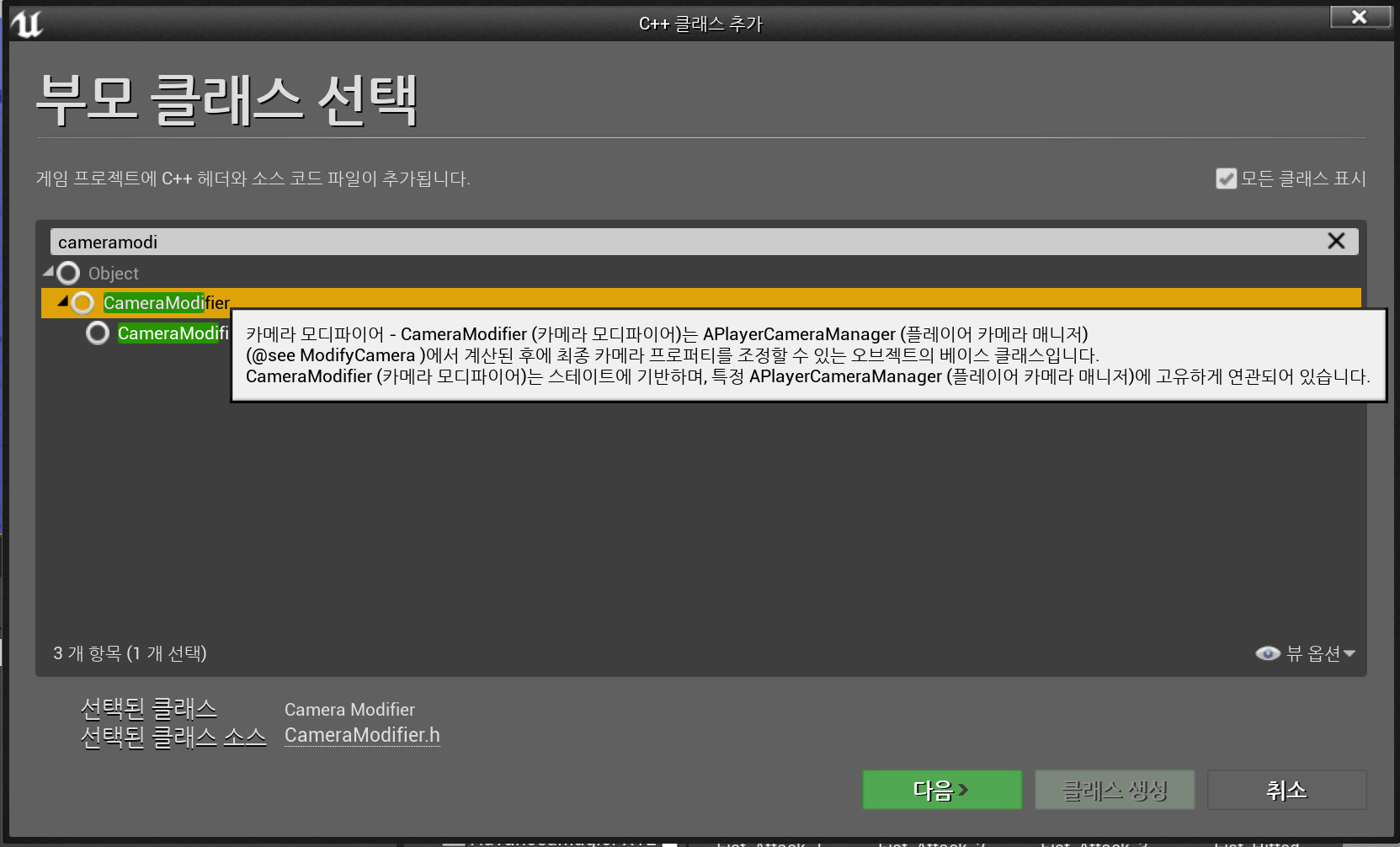 새 C++ 클래스 - CameraModifier - CCameraModifier 생성