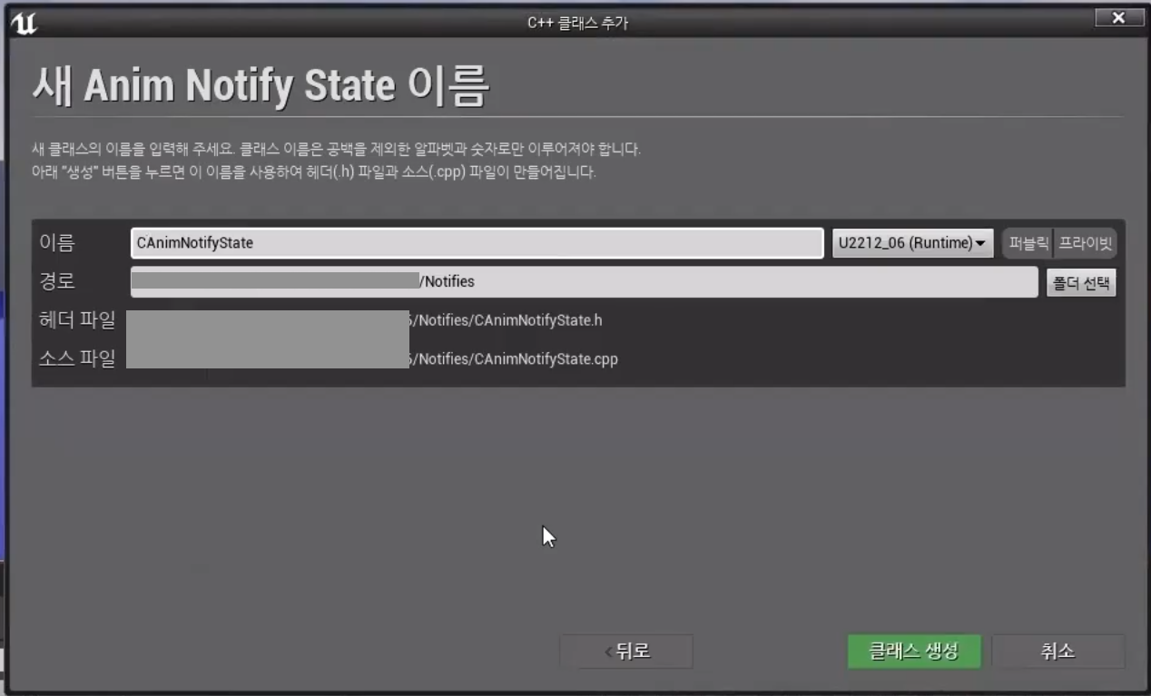 새 C++ 클래스 - AnimNotifyState - CAnimNotifyState_CameraAnim 생성