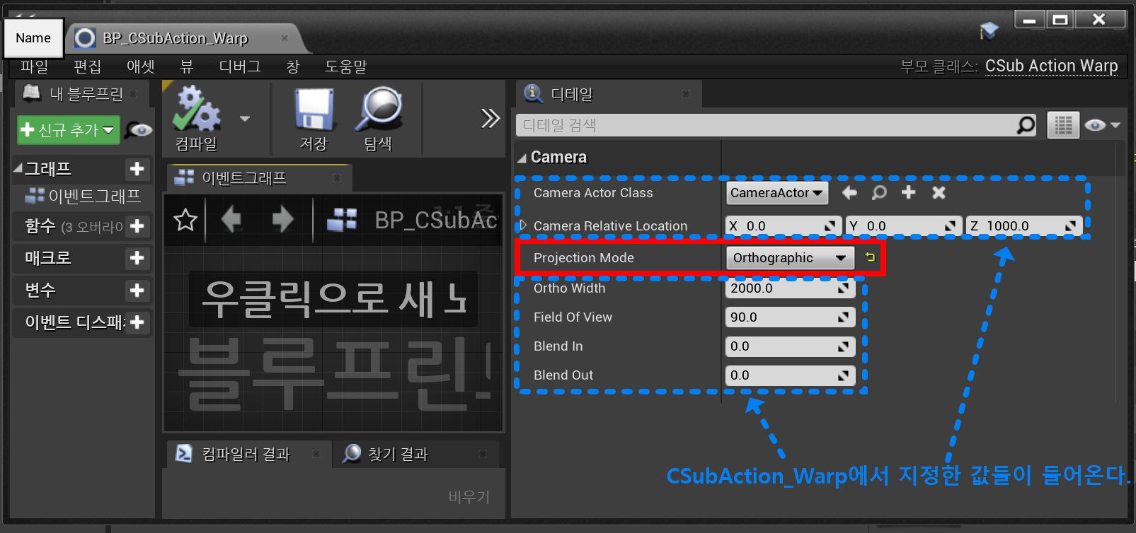 CSubAction_Warp 기반 블루프린트 클래스생성 - BP_CSubAction_Warp 생성