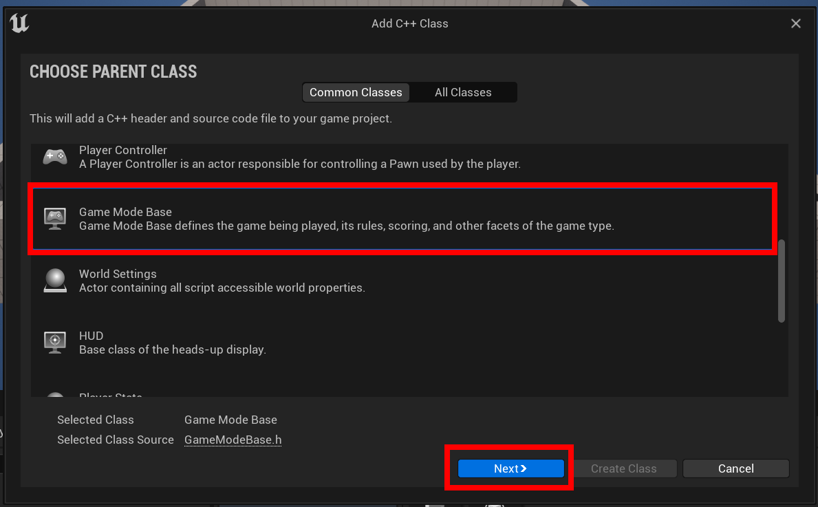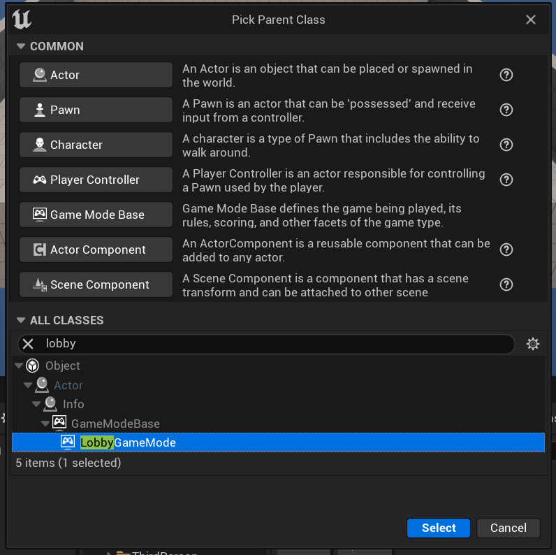 새 C++ 클래스 - Game Mode Base - LobbyGameMode 생성