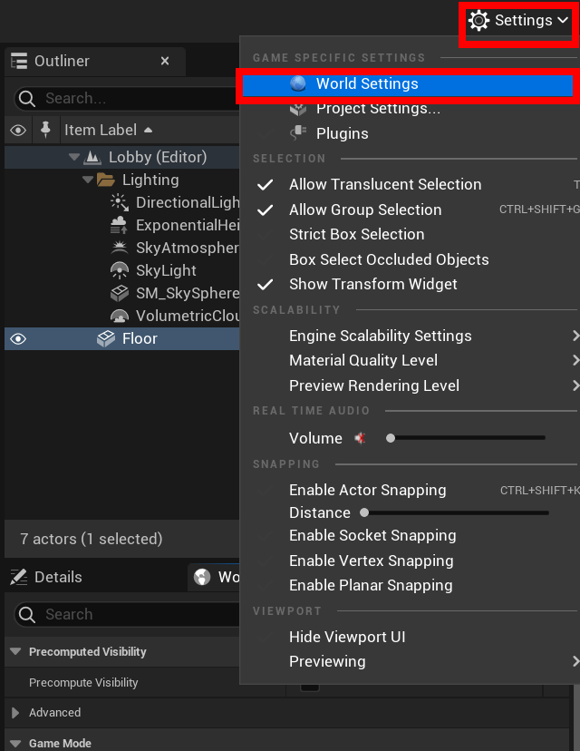 World Settings에 Game Mode를 BP_LobbyGameMode로 변경하기