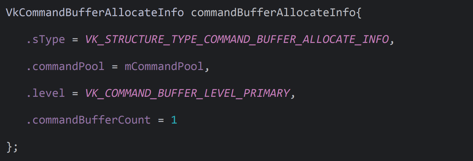.sType = VK_STRUCTURE_TYPE_COMMAND_BUFFER_ALLOCATE_INFO,