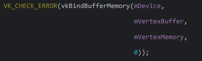 VK_CHECK_ERROR(vkCreateBuffer(mDevice, &bufferCreateInfo, nullptr, &mVertexBuffer));