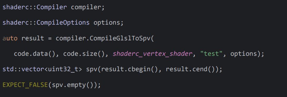 code.data(), code.size(), shaderc_vertex_shader, "test", options);