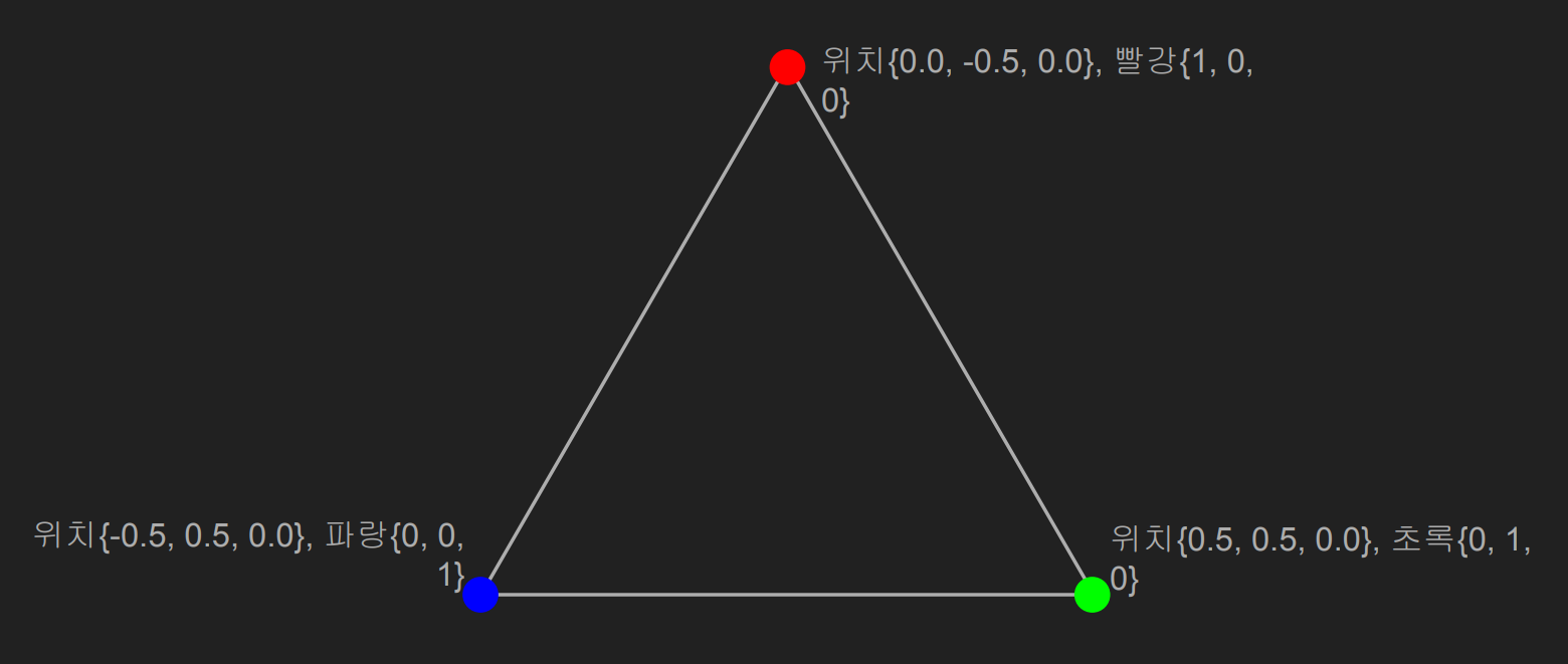 위의 삼각형을 그리기 위해 버퍼에 저장할 데이터 코드를 작성하면 위의 코드와 같다.