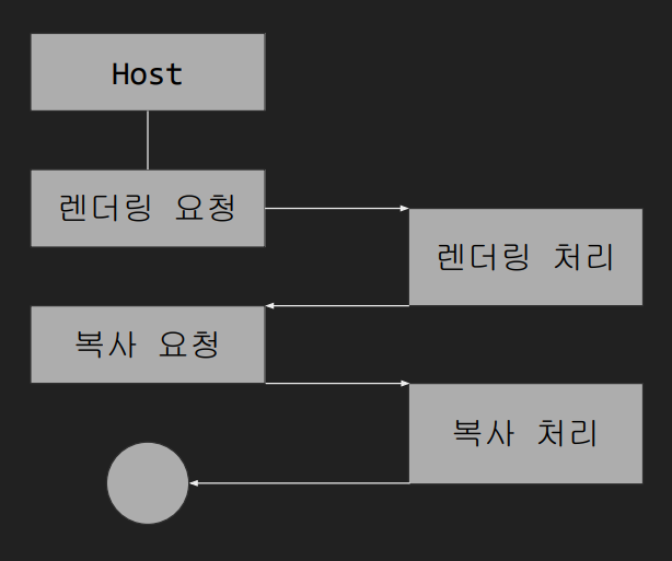 Host는 Device에 렌더링 요청을 한다. Device는 이 요청에 따라 렌더링 작업을 수행한다. 렌더링이 완료된 후 Host는 결과를 읽기 위해 복사 작업을 요청한다. Device가이 복사 작업을 처리하면 Host가 접근 가능한 메모리 영역에 렌더링 결과가 저장된다. 만약 렌더링이 아직 진행 중인 상황에서 복사 요청이 이뤄진다면 오류가 발생하거나 잘못된 결과를 얻게 된다.