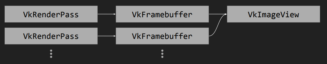 해당 이미지 예시의 경우, 2개의 Framebuffer가 Render Pass를 가리키고 있다.