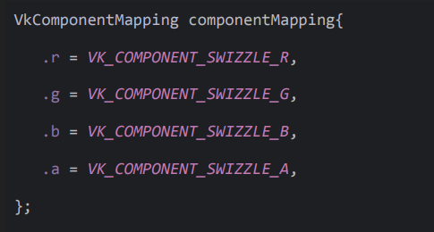 VK_COMPONENT_SWIZZLE_IDENTITY = 0, // 원본 채널값을 그대로 사용