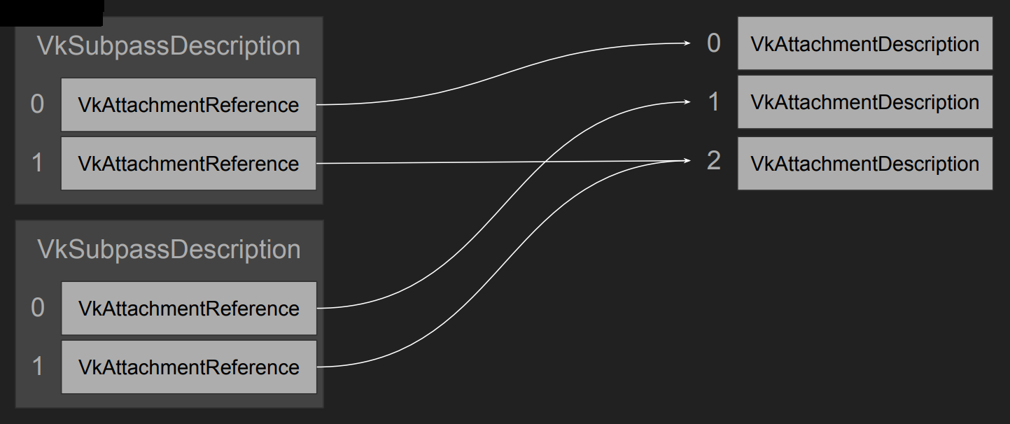 | pAttachments | VkAttachmentDescription 배열의 포인터 |