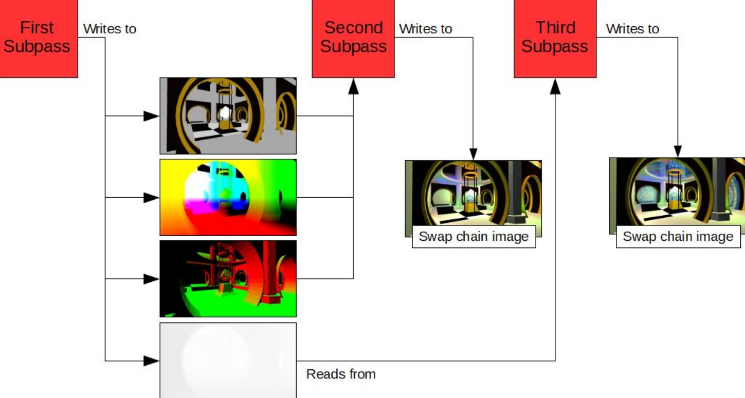 각 Sub pass에서는 프레임버퍼의 데이터가 어떻게 읽고 쓰일지 정의된다.