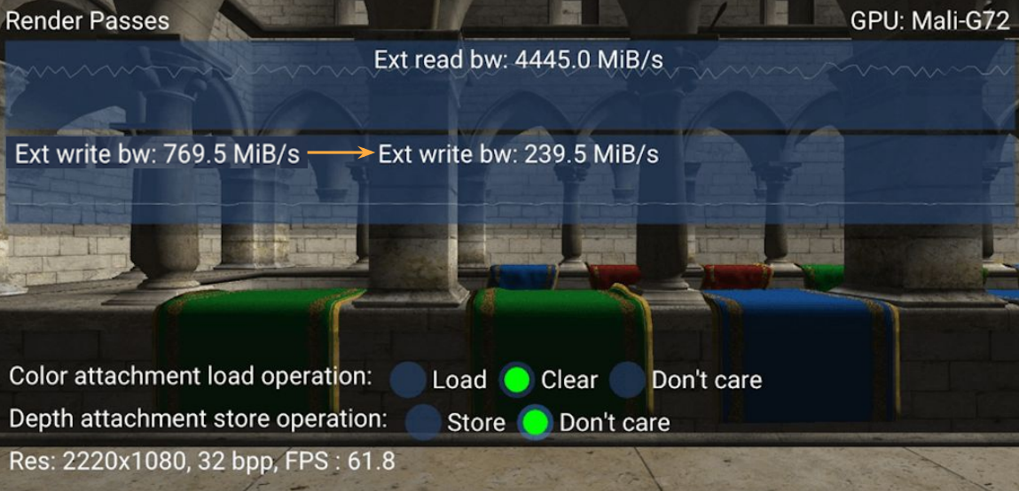위와 같이 Render pass를 통해 메모리 대역폭을 최적화할 수 있고, 이는 전반적인 성능 향상으로 이어진다.