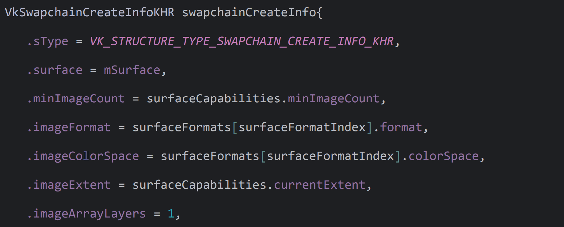 - minImageCount는 버퍼링을 의미하며 2인 경우는 더블 버퍼링, 3인 경우는 트리플 버퍼링이라고 한다.