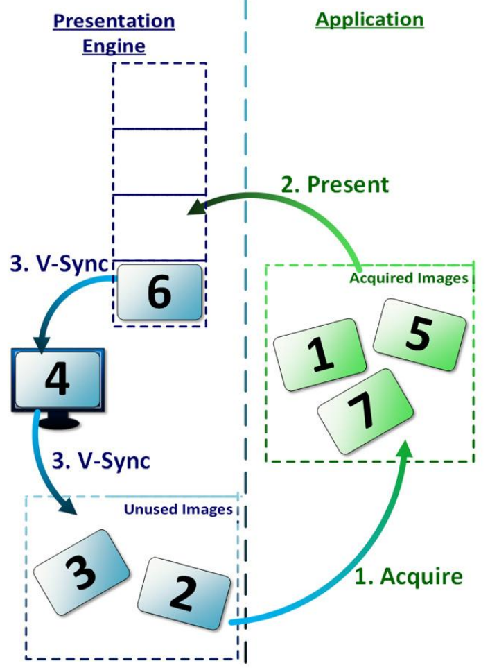 - 어플리케이션이 요청하면 Vulkan Swapchain에서 어플리케이션으로 반환된다.