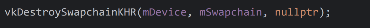 void vkDestroySwapchainKHR( VkDevice device, VkSwapchainKHR swapchain, const VkAllocationCallbacks* pAllocator);