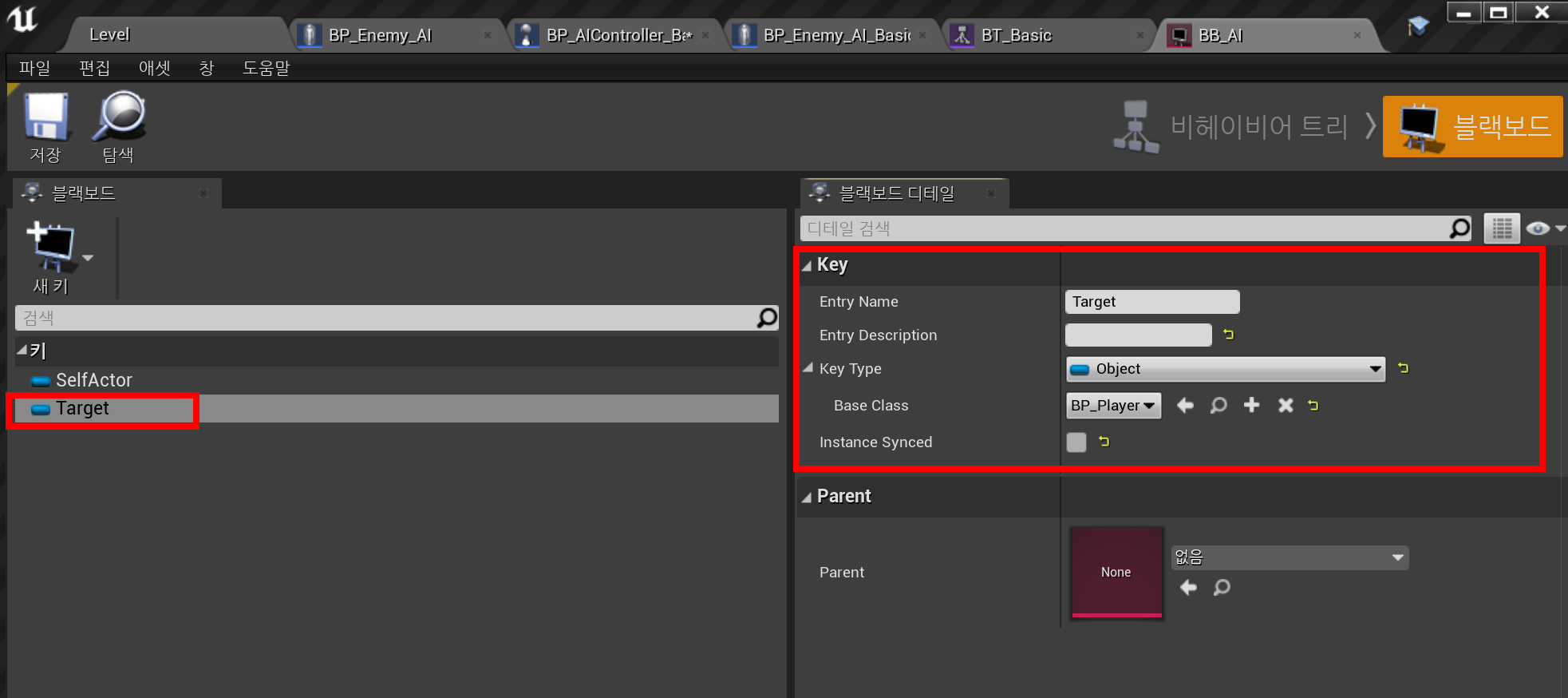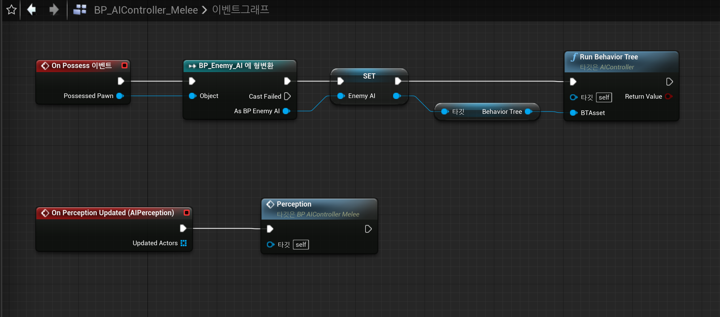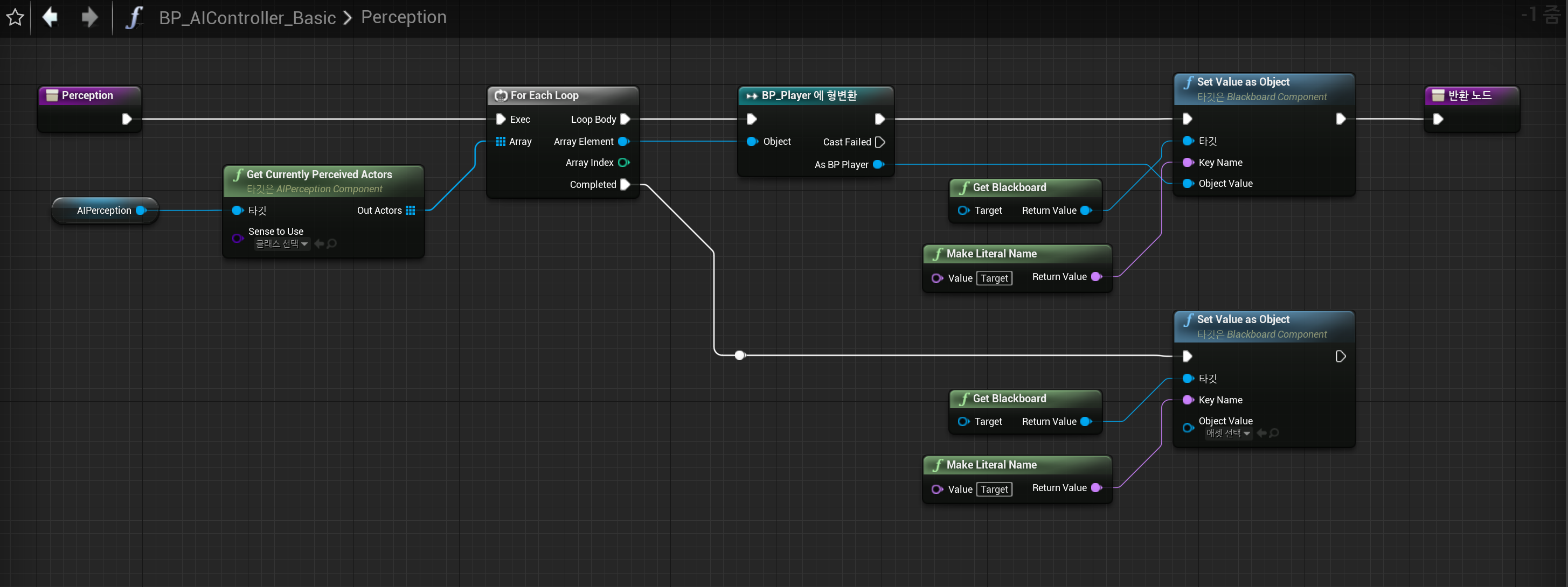 - 참고) AIController가 달라도 같은 블랙보드를 사용할 수 있다. 이런 경우 감지하는 경우를 공유하게 만들 수 있다.