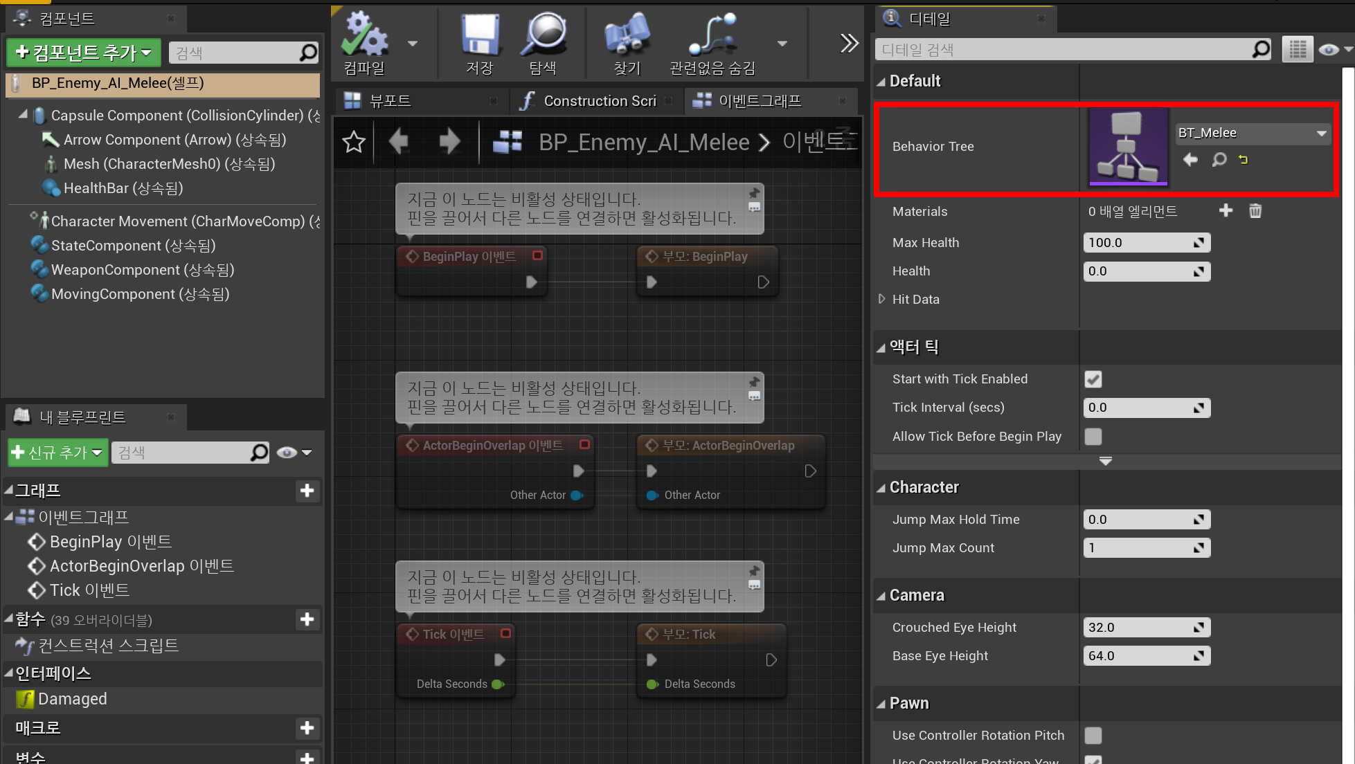 - Default - Behavior Tree - BT_Melee로 변경