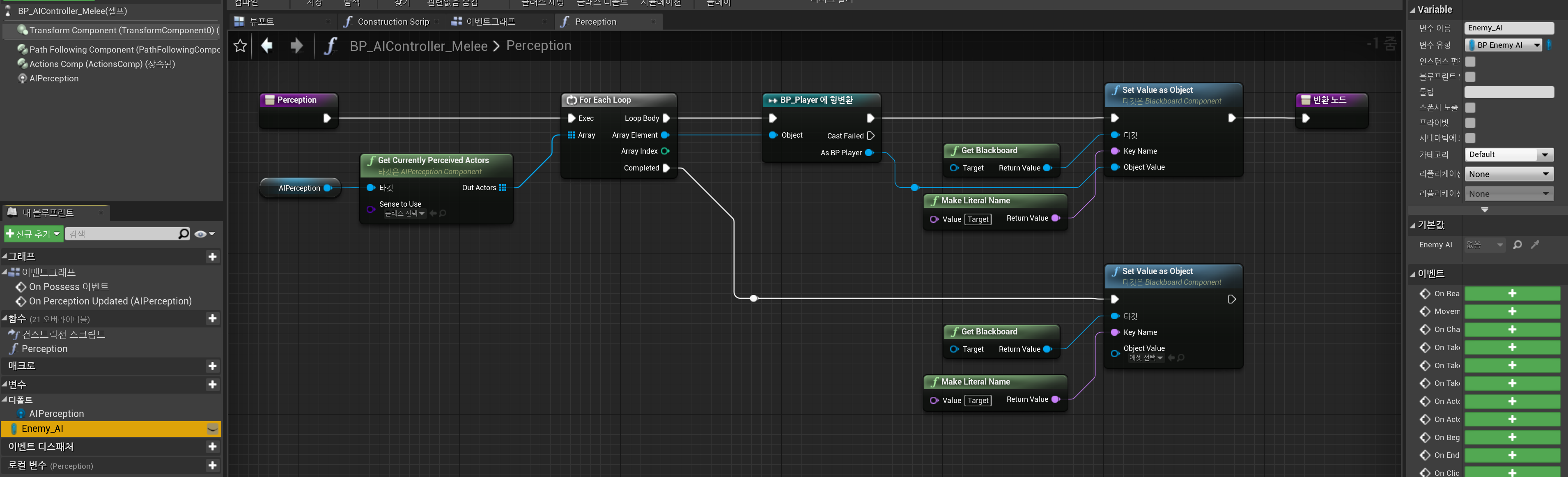 - 변수 생성: Enemy_AI (BP_Enenmy AI)